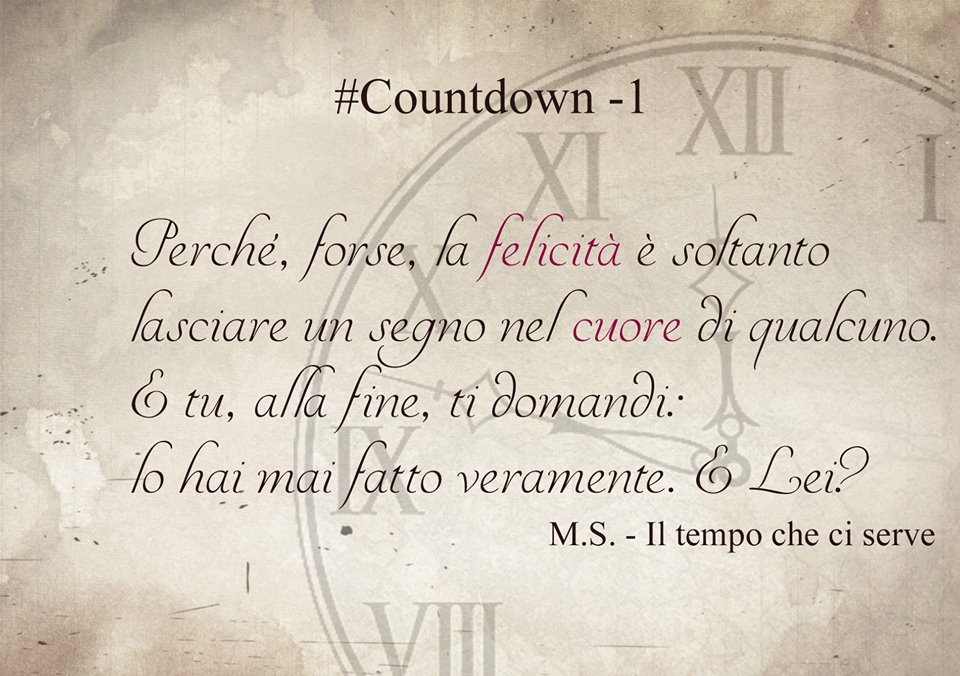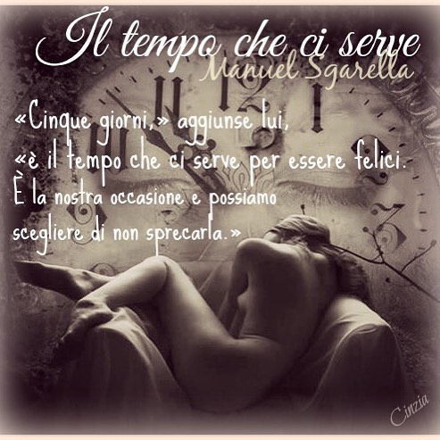 Eppure, ci sono alcune frasi che sembra “afferrino” il lettore più di altre. In questa pagina raccolgo alcune immagini create da Sara, Cinzia e Chiara, tratte dal primo romance che ho pubblicato, ovvero “Il tempo che ci serve”.